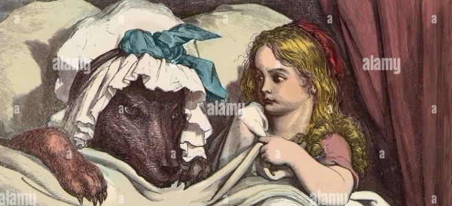 Pero el profesor Daniel Nahún de Uruguay, tiene una linda interpretación de este lobo con cesárea: es un castigo a su travestimo. Porque el lobo, recordemos, se viste de abuela, de mujer, y su castigo es la muerte, muerte por una cesárea de piedras que lo obligarán a beber hasta ahogarse. ¿Este es el final que más gusta a los niños y niñas? No lo sé, creo que por muchísimas generaciones las versiones narradas no fueron exactas. Las niñas no saben que la precoz púber se desnudó antes de entrar a la cama, los niños no saben que devorar es lidiar con el sexo en la literatura. No lo saben y generalmente, preferimos matar a la bestia, es más fácil que decir que la muerte de una niña puede haber sido su primera experiencia sexual. Eso es un mito que aún hoy, 400 años después de hacerse conocer, la pequeña no puede revelar.